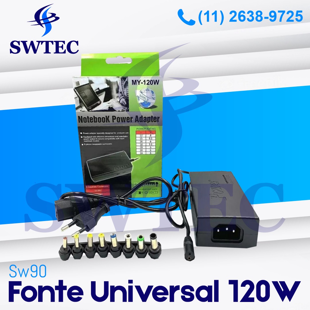 🆙 A fonte universal estabilizadora, com emissão de carga constante e controle de fluxo de energia, evitando curto circuitos e danos ao notebook em casos de queda de energia.